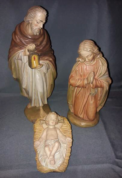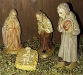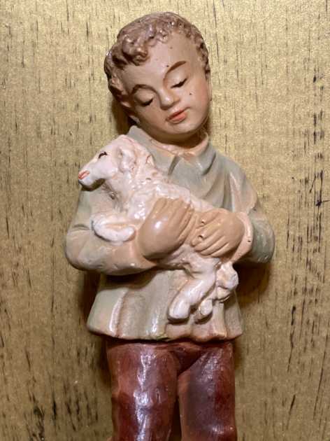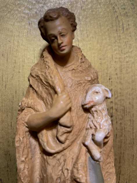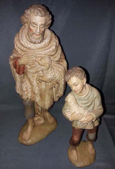 Diese dezent colorierten Figuren mit blassgrünem Sockel gibt es grds. in den Größen 10, 12, 15, 18 und 30 cm. Einige Funde passen jedoch nicht in dieses Raster. Auch ist die Kategorisierung dann schwierig, wenn es sich bspw. um jugendliche Hirten handelt. Mit der Größe steigt oft der Detaillierungsgrad. So kommen etwa Taschen o.dgl. hinzu.